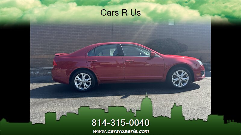 Check out this sleek 2012 Ford Fusion SE in Red Candy Metallic Tinted Clearcoat with a cozy Camel interior! This beauty is equipped with a reliable 2.5L I4 engine that delivers 175hp and 172ft. lbs. of torque. With less than 97,000 miles on the odometer, this car has been gently driven at under 7,000 miles per year on average. The factory default features include power windows, locks, and mirrors, keyless entry, cruise control, air conditioning, AM/FM stereo with CD player, and steering wheel-mounted audio controls. This Fusion is in excellent overall condition and is ready to hit the road in style!