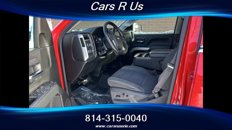 2017 Chevrolet Silverado 1500 LT in Dark Toreador Red with a Dark Ash interior and Jet Black accents. Powered by the factory EcoTec3 5.3L V8 (355 hp, 383 lb-ft), this truck achieves 16 MPG city and 22 MPG highway and is in excellent overall condition. Factory equipment includes the Chevrolet MyLink infotainment system with touchscreen, Bluetooth hands-free calling and audio streaming, USB inputs, steering-wheel audio and cruise controls, remote keyless entry, power windows and door locks, air conditioning, and alloy wheels. Safety and chassis features installed from the factory include a rearview camera, anti-lock brakes (ABS), multiple airbags, StabiliTrak electronic stability control and traction control.