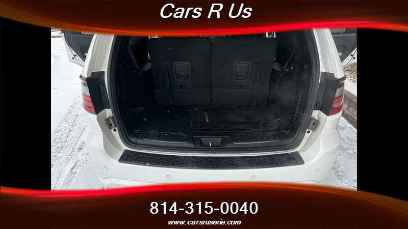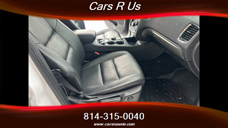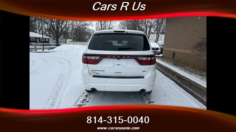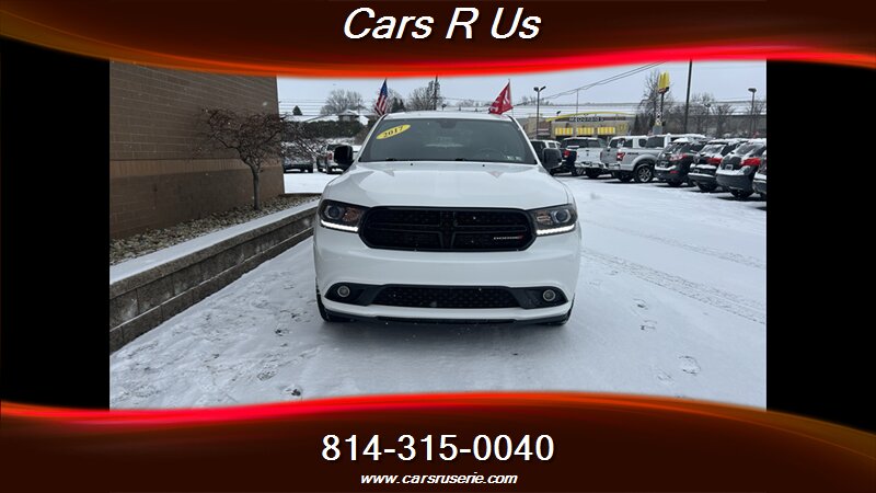 Clean 2017 Dodge Durango GT in White Knuckle Clear Coat with a Black interior, powered by the Pentastar 3.6L V6 (295 hp, 260 lb-ft) and an 8-speed automatic — under 94,000 miles (averaging <10,000 miles/year) and rated about 18 MPG city / 25 MPG highway. Factory-standard features typically include three-row seating for up to seven with versatile 60/40 split-folding second and third rows, power windows and locks, remote keyless entry, cruise control, steering-wheel audio and phone controls, tri-zone automatic climate control, and alloy wheels. You’ll also find Chrysler’s Uconnect infotainment with Bluetooth and USB inputs, a rearview camera, multiple airbags and stability control for comfort, convenience, and peace of mind.