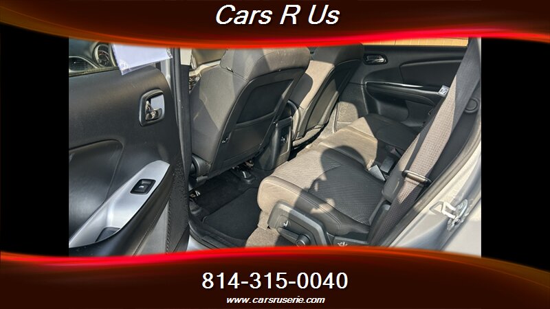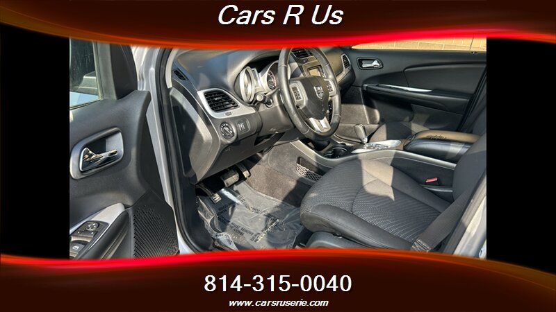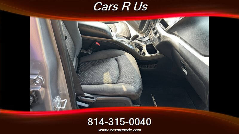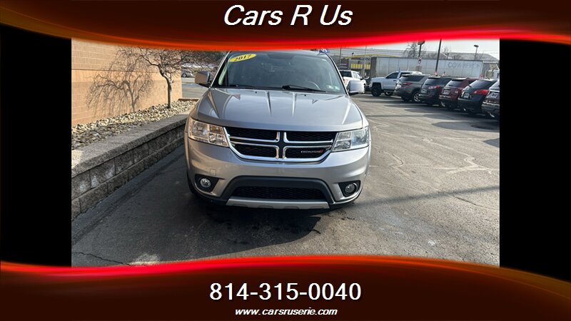 2017 Dodge Journey SXT in Granite Pearl Coat with a Black interior, powered by the Pentastar 3.6L V6 (283 hp, 260 lb-ft); EPA-rated at 16 MPG city / 24 MPG highway. Factory equipment includes a six-speed automatic transmission, front-wheel drive, Uconnect infotainment with Bluetooth and auxiliary/USB inputs and steering-wheel audio controls, cloth seating, power windows and locks, remote keyless entry, cruise control, air conditioning and a tilt steering column. Standard safety and convenience features include multistage front airbags, side-curtain airbags, four-wheel ABS, traction control and electronic stability control for everyday practicality.