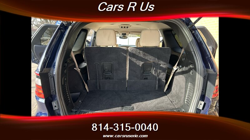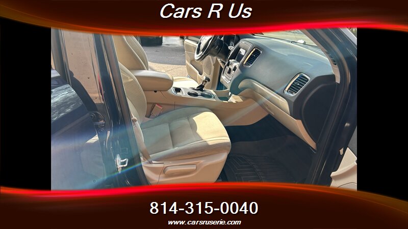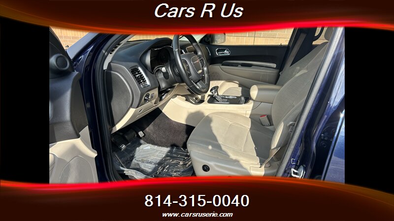 2018 Dodge Durango SXT Plus — powered by the Pentastar 3.6L V6 (293 hp, 260 ft. lbs.) paired to an 8-speed automatic, returning about 18 MPG city / 25 MPG highway. Factory-standard equipment gives you a practical, family-ready package: three-row seating for up to seven with split-folding rear seats, power windows and door locks, cruise control, steering-wheel audio controls, Bluetooth hands-free calling and audio streaming, USB/auxiliary inputs, a rearview backup camera, AM/FM audio with multiple speakers, and automatic climate control. Safety and stability systems come standard too — ABS, traction control, electronic stability control, and a full complement of airbags — making the Durango SXT Plus comfortable, connected, and confidence-inspiring on every drive.