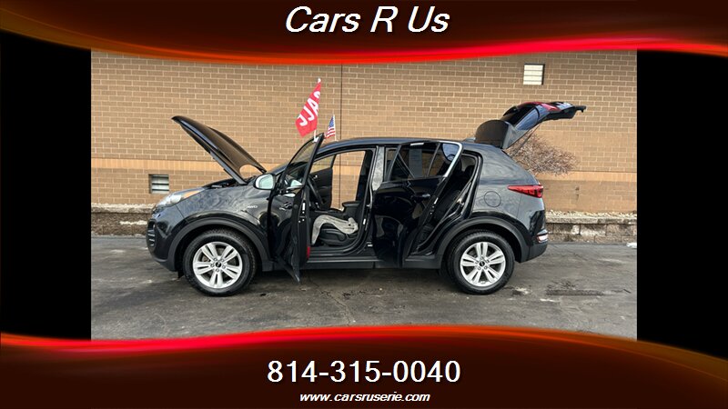 Bright, roomy and ready to go — this 2018 Kia Sportage LX pairs the peppy 2.4L I4 (181 hp / 175 lb-ft) with smooth, confident performance and excellent overall condition. Factory-standard features include comfortable cloth seating with a 60/40 split-folding rear seat for flexible cargo space, full power accessories (windows, locks and mirrors), cruise control and a tilt/telescoping steering column. Stay connected and entertained with Bluetooth hands-free calling and audio streaming, USB/AUX inputs and an easy-to-use infotainment display, while steering-wheel audio controls keep everything at your fingertips. Safety comes standard with ABS, electronic stability and traction control, a rearview camera, multiple airbags, LATCH child-seat anchors and a tire pressure monitoring system. Practical, dependable and cheerful to drive — this Sportage LX is a great everyday SUV.