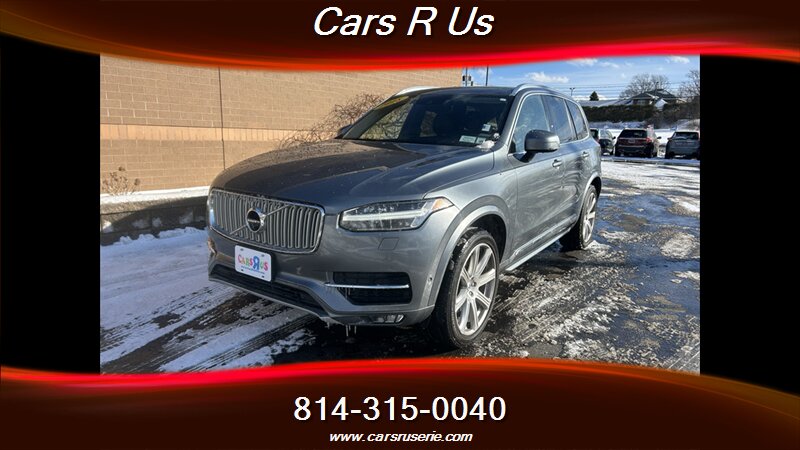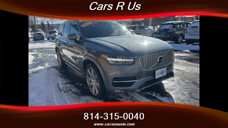 2018 Volvo XC90 T6 Inscription — Osmium Grey Metallic exterior with Charcoal leather interior, powered by a 2.0L Twincharged I4 producing 316 hp and 295 lb-ft, mated to an 8-speed automatic with all-wheel drive. Excellent overall condition; EPA-rated 20 MPG city / 27 MPG highway.