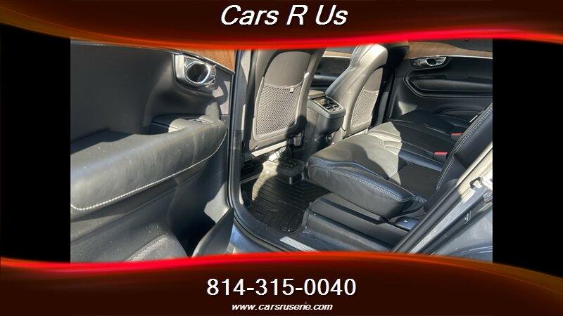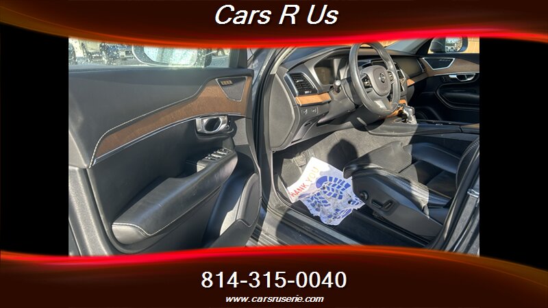 Factory-equipped highlights include Volvo Sensus touchscreen infotainment with smartphone integration and Bluetooth, premium audio, leather-appointed Nappa seating, power-adjustable and heated front seats with memory, three-row seating, panoramic sunroof, four-zone automatic climate control, power liftgate, LED “Thor’s Hammer” headlights, alloy wheels, and a comprehensive safety suite with City Safety automatic emergency braking (including pedestrian/cyclist detection), lane-keeping aid, blind-spot monitoring with cross-traffic alert, rearview camera and parking sensors.