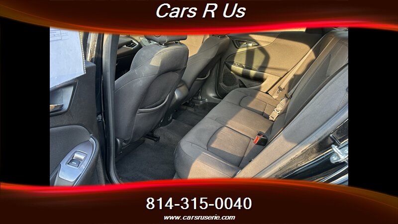 2020 Chevrolet Malibu RS in Mosaic Black Metallic with a Jet Black interior, powered by an Ecotec 1.5L Turbo I4 producing 160 hp and 184 lb-ft of torque; EPA fuel economy is 29 MPG city / 36 MPG highway. Factory equipment includes the Chevrolet Infotainment 3 system with an 8-inch touchscreen, Apple CarPlay and Android Auto compatibility, Bluetooth and USB connectivity, a six-speaker audio system and available 4G LTE Wi-Fi. Standard safety and driver-assist features are provided by the Chevrolet Safety Assist suite (forward collision alert with automatic emergency braking, front pedestrian braking, lane keep assist with lane departure warning, following distance indicator and automatic high beams) plus a rear vision camera. Convenience items include power windows and locks, remote keyless entry, automatic climate control and cloth Jet Black seating; the RS appearance package adds blacked-out exterior accents and unique wheel styling.